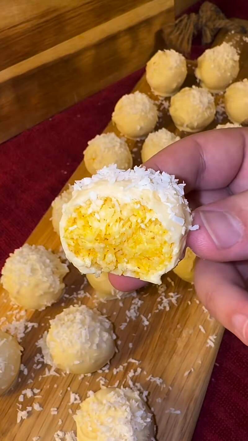 Mix the shredded coconut and the condensed milk together. After that, add the saffron and mix again. Let the mixture sit in the fridge for 30 minutes before making the balls. Then, take out the mixture and roll into small balls. Melt some white chocolate and dip the balls into the chocolate. Before the chocolate sets, sprinkle some more coconut on top. Enjoy!